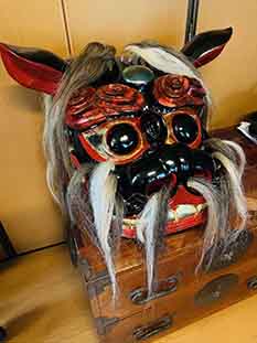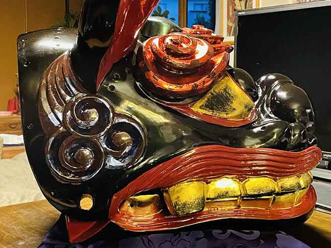 様式も画一的で、金と黒と赤、そしてタテガミの白が伝統の色合い。いろんな技法を用いて特色ある獅子