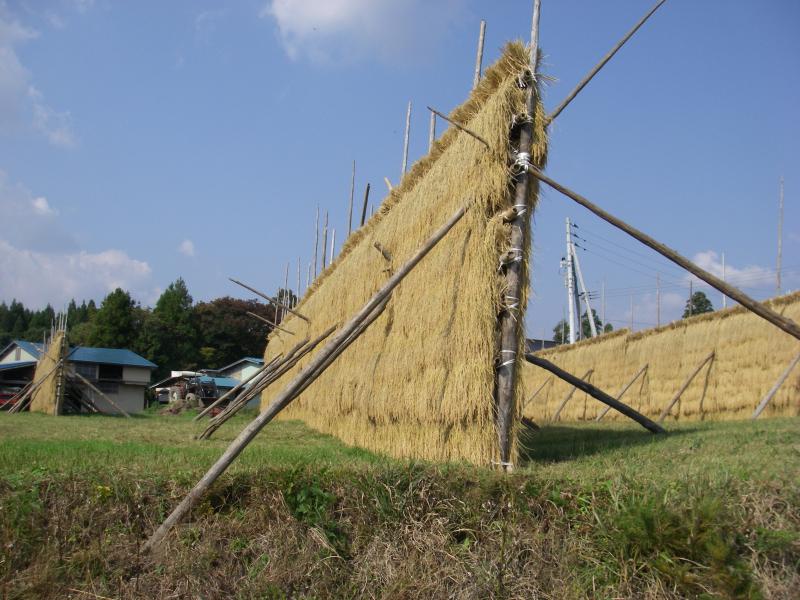 お天道様や雨風にさらされて干された稲は懐かしい匂いがします。