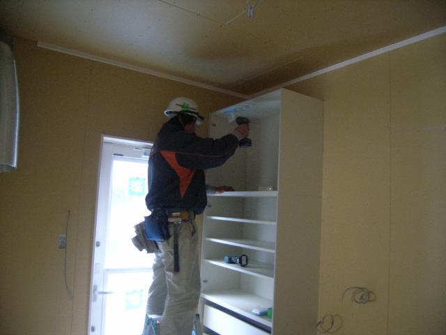 当現場はキッチン・カップボード(食器棚)の取付けです。