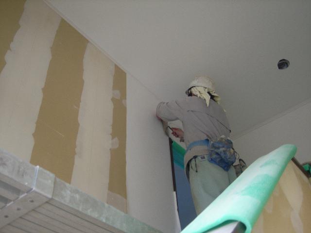●河北町H団地 HI様邸新築工事-46 壁・天井クロス貼り 『テクノストラクチャーで建てる山形の長期優良住宅』