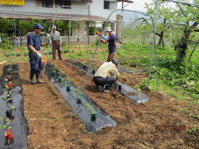 本日は4人で園主私用の野菜畑つくりなんぞしている。花摘みで1分だって惜しいのに・・・