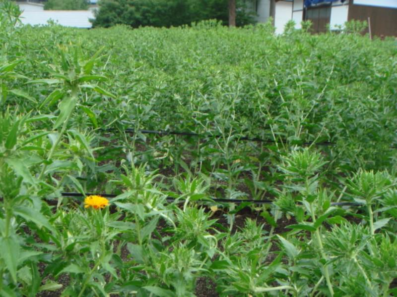 ●紅花畑 露地ようやく開花!at山形県河北町紅花資料館