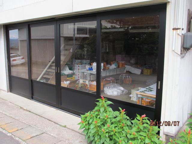 ●作業小屋兼売店のガラス戸をつけました・・上山観光フルーツ園山形チェリーランド