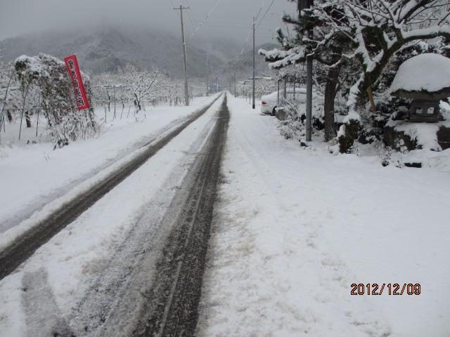 写真は今日の農園付近、雪がしんしんとふっています。