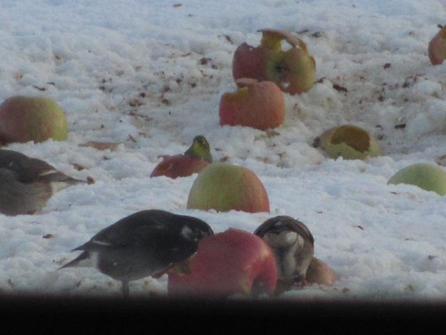 エサ場の真ん中で、他の鳥に混じってみたようです。大きさの違いが解りますね。