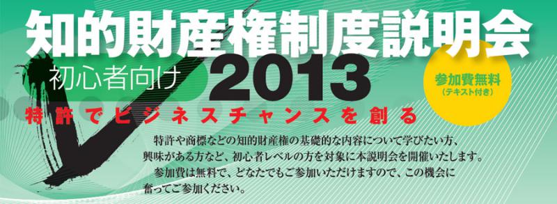 『初心者向け 知的財産権制度説明会2013 特許でビジネスチャンスを創る』のお知らせ
