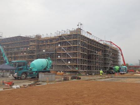 校舎棟です。コンクリート打設をしています。