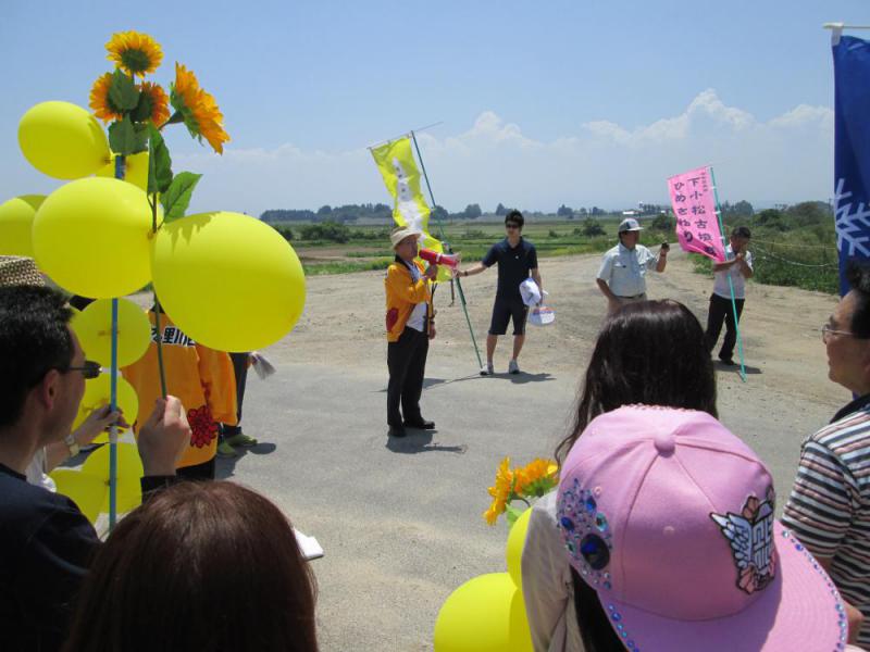 [フラワー長井線沿線情報]★フラワー長井線に手をふろう!! スマイルプロジェクト100★★★第2回目は 5月31日(土) 「おしょうしな」をテーマ に、赤湯~白鷹間を特別列車が走り、沿線では多くの方々が、その思いを列車に向けてアピールしてくださいました。川西会場となった「西大塚駅東側」の最上川堤防沿い」には、100.名を超す皆様が集合してくださり、思い思いのスタイルで列車に声援を送ってくださいました。中でも町内の郵便局職員の皆さんは、コスプレからロボットスタイルなど多様な趣向で会場を盛り上げてくださいました。今回も参加してくださいました皆様大変ありがとございました。次回は「秋の置賜路」・・味覚の秋に、また会場でお会いしましょう。「スマイルプロジェクト100」とは フラワー長井線は100周年を迎えました。 これまで支えていただいた地域の方々、そしてこれからもご利用いただく皆様と一緒に、お祝いをすると共に更なる発展を目指して 「フラワー長井線スマイル プロジェクト100」を立ち上げました。 このプロジェクトは、沿線から列車に手を振るスマイルプロジェクトをメインに、地域プロモーションビデオやイメージソングを制作し インターネットなどを活用した広報によってフラワー長井線を発信しPRしていくものです。 100周年のお祝いや感謝、そして観光でいらしたお客様への歓迎やおもてなしの気持ちを一緒になって伝えていきましょう。赤湯〜白鷹荒砥まで・・フラワー長井線沿線で手をふろう!!このプロジェクトは、フラワー長井線が走っている2市2町で同時開催されます。 南陽市、長井市、白鷹町、川西町、の各「手をふるポイント」でたくさんの方のご参加をお待ちしております。 詳しくは、チラシまたは「スマイルプロジェクト100」のWEBサイトをご参照ください。▼スマイルプロジェクト100のWEBサイトはこちら ★http://www.smileproject100.com/index.html★YouTube(フラワー長井線スマイルプロジェクト・列車に手をふろう!!)