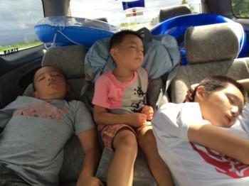 こちらは、夏休み中の息子達。約束していた新潟の海?(正確に言いますと、台風の影響で、大荒れの海に入れず、残念ながらプールへ行った)の帰り道です。