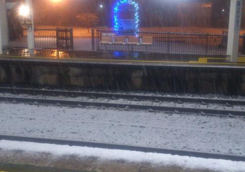 ●ついに冬将軍到来!ホームも線路も真っ白に