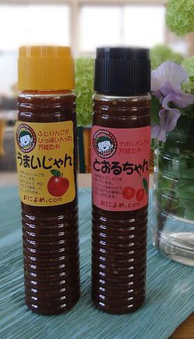 今年で3年目の おによめ.com 一番人気の 私、万能タレも3才になりました。 最近・・・少しおしゃれしてみたくなったんです。 昨年から、いろんな サンプルを取り寄せて検討してきましたがやっと決まったようです。 今度は ペットボトルでキャップもしっかりしているので 匂いも気にならず、発送もバッチリです。 (最近は、県外のお客さまからも注文が来るようになりましたんですのよ。(^_^;)) こちらは4月から発売予定みたいですので どうぞよろしくお願いいたします。 今までの 素朴なうまいジャンは イベントで販売してくれるそうなので 普段着の私もこれまで同様よろしくお願いします(@^^)/~~~