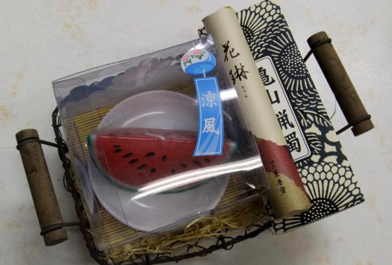 御盆の御供に。。。すいかのロウソクと御線香セット。。。アートフラワーと蓮ロウソクと一緒に。。。