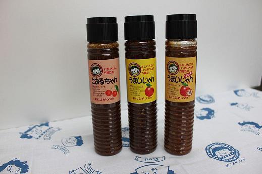 お肉でなくても肉を食べた気分になる!おによめ.com 売上1の万能タレのご紹介です。 うまいじゃん: 1升分に入っているりんごの量は1kg\(◎o◎)/! 他ニンニク(自家製)玉ねぎ、生姜 の擦りおろしがたっぷり入ってます。これもうまいじゃん: うまいじゃんに味噌を加えました。冬限定商品です。 お肉を漬け込んでから 焼くとすっごく美味しいです。 とおるちゃん: 1升分に入っているさくらんぼ(ナポレオン)は800g りんご200gです。 さくらんぼはペーストにしてあります。 こんなにふんだんにさくらんぼが使えるのは、生産農家ならではかな 230g入り ボトル 500円 グリーンショップ原田さんにも並んでいます。 みんなが集まる年末年始 是非お試しくださいませ。