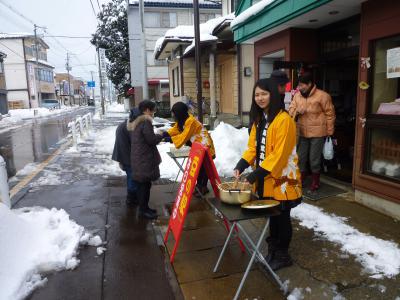 1月30日(土)に開店した豆の駅は3回目を迎えました。毎月最終土曜日に高校生がお出迎えする、豆の町川西をPRするこの店は、山形新聞やYBCラジオにも取り上げられ、注目されています。その証が、今回の開店でした。新聞チラシも入れずに不安の中開店したところ、30名以上の方々がご来店。遠くは河北町や山形市からのお客様もいて、生徒も感激! 「くらかけ豆はないの?」「それぞれの豆にレシピが付いているといいと思うよ。」「販売している豆の一覧があれば分かりやすい。」など、アドバイスやご意見もたくさんいただきました。これからの、豆の駅につなげていきます。 みなさん、本当にありがとうございました。 そうそう、明日3日の午後4時53分からYBC山形放送のピヨ卵で、豆の駅が放送されます。見てください。