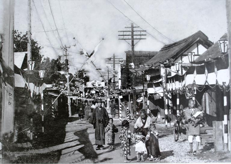 大正15年1926年あら町地区、米坂線開通記念とあります。米坂線が全線開通、町は祝賀ムードで盛り上がっていたのですね。丸太写真館さん寄贈写真です。現在と思われる写真は同じ昭和42年羽越水害時の写真から、このアングル?と思うのですが、あってるかな?  同じ丸太写真館前で撮ったものようです。昭和の小松町、高度成長以前までは風情もあり、町は活気にあふれ、繁栄していたことが伺えます。 丸太写真館さんは自分も写真を撮り始めた中学3年からお世話になっていた。ご主人、生きてるうちに伺っておけばよかったのだけど。・・・