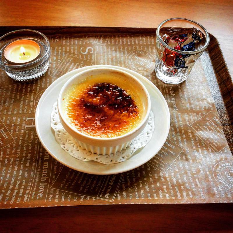 当店でも屈指の人気を誇る「クレームブリュレ」今までは一皿でお出ししていましたが、何か演出が物足りなく感じ、プレートに乗せてチョコのお菓子と一緒にキャンドルも一緒に添えてみました。お客様からは「かわいい!」と、大変好評です(⌒▽⌒)!
