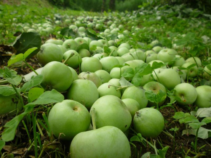 ただいま急ピッチでりんごの摘果をしています。りんごはちょうどピンポン玉ぐらい。これを「りんご車」と呼んでおります。脚立の上に乗って作業していると 下一面にごろごろ落ちて溜まります。脚立から降りるとちょうど足がりんご車にのってローラースケートのようにゴロゴロ転がって、ついにはおしりがドシン。 それはそれは見事に転がります。