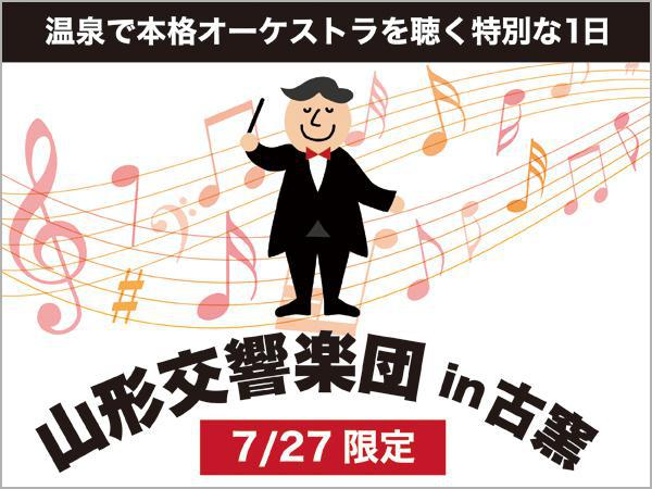 〜 山形交響楽団が古窯で1dayライブ!チケット付ライトプランで温泉と食事を楽しめます! 〜山響のコンサートマスター煖エ和貴氏が率いる山響ストリングス。心癒す”セレナーデ”を古窯でお届けします!会場:日本の宿古窯 3Fコンベンションホール「紅の花」開演:20:00(開場19:00)プログラム:・ディヴェルティメント 二長調 K.136・「ホルベルク組曲」より・弦楽セレナーデ ハ長調 作品48当プランは7/27限定で古窯にて行われる山響コンサートチケット付きプランです。ご夕食は山形県自慢の県産ブランド牛「山形牛」を使用したすき焼きメインの和食膳で舌鼓!食事が終わったら存分に山形交響楽団の奏でる音色をお楽しみ下さい。■■■プラン名■■■■【1日限定!山形交響楽団in古窯】山響コンサートチケット付き古窯満喫ライトプランhttp://urx.red/xbM9■■■■■■■■■■■■■-------------------------------------------------