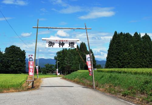 飯豊町萩生諏訪神社の祭礼8月16日にくり出す、荒獅子、神輿、その獅子舞は20〜30人の若衆による長蛇の獅子、祭ばやしにのりながら、声だせ、声ーーーオらーぁーと、酒に酔い、舞に酔っている、萩生の獅子は荒獅子と呼ばれひときわ威勢がいいのが特徴、警護役の力士と獅子が行う力比べは必見ですね。