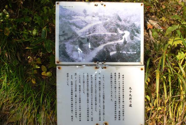 バード遠望地との看板から落合側に下ると、九十九折り道の写真付き看板が見える、明治27年の宇津峠新道である、昭和42年の宇津トンネル開通前私が小学4年まではこの道を車が行き来していた、父の車の助手席に乗り、車とすれ違うときは崖ぎりぎりに寄って”左オーライ、バックオーライ”とか言ってはらはらどきどきだった、道は砂利、雨で道はえぐれ重い荷を積んだ車は右に左に大きくうねるのでした、この頃、父は秋になると胃が痛い、胃が痛いと言って、母は毎日、胃に好いという事で大皿にてんこ盛りの千切りキャベツを出していたのでした、しかし羽越水害の昭和42年以降に道は舗装、峠はトンネルとなり父の胃病みは納まったのでした、胃はこの悪路のせいだったのがはっきりしたが、キャベツ効果が分からずじまいだった・・そんなことがふと思い出された、この下側には峠道の石積みが残り、発掘調査もしているようでした、峠ももうすぐ終わる頃「切腹松」という看板が出てきます、名刀村正を盗み追っ手に追われ、もはやこれまでとここの松ノ木の下で切腹したという箇所・・ほんとかどうかは分からない、そして落合の地蔵尊に出ます。ここから旧宇津トンネルへと行く道と現113号線に交わる道につながります。