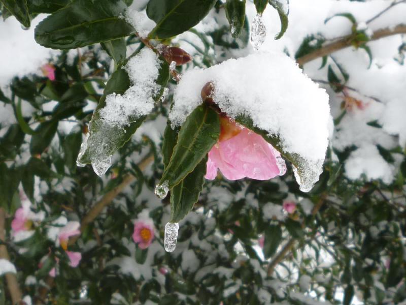 昨日から降り続いた雪で庭のさざんかの花が雪に隠れてしまいました。今はお歳暮の箱詰め作業が続いています。