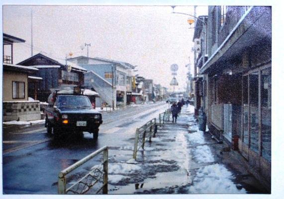 おそらく1982年正月、山形に帰省し2歳になった長男に父がおもちゃを買ってくれるというのでおもちゃのピッコロに行ったときになにげなく撮った写真と思います。ピッコロとなりは館金さんで父の仕事仕入先でもあり、父が話し込んで暇だったから館金さんの前から山形銀行のある西側と小松駅のある東側を撮ったものです、この年も雪が少ないようです・・35年後の同じ1月2日初詣のお参りがてら散歩して同じ場所で撮影しました、昔生まれて初めて5月連休だったか?高校1年?アルバイトをさせてくれた館金さん花見団子で忙しくお店番や団子作りにだんごの配達でした、お世話になった館金さんは今は無く空き地になってます、小松小前バス亭は残っていました。