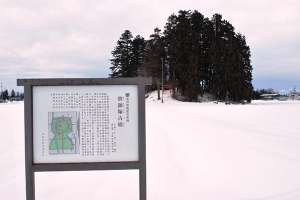 米沢市窪田町東江股に移住、そこから米沢市内に行く米沢南陽道路の側道沿いを走ると気になる森があり説明版に古墳とありました、米沢市窪田町窪田字北宝領・・「寳領塚古墳」は、松川(最上川)と鬼面川のほぼ中間の扇状地性沖積地に築かれた全長約80mの前方後方墳で、前方後方墳としては東北地方最大級、説明版には前方部の長さ40m、幅50m、後方部の長さ40m・幅44mとされ「稲荷神社」が鎮座している。平成元年の調査で墳丘は3段、葺石や周溝の存在が確認されたという。出土物は土師器などであり、築造時期は4世紀後半頃と推定されている。平成3年に米沢市指定文化財に指定されている。置賜にも多くの古墳がありいつかはみな廻ってみたいです。