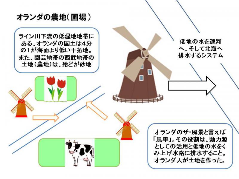 そして、低地の水を風車を利用して運河へくみ上げ、また、運河を経由し、より大型の風車を利用し、北海へ排水するシステムを取り入れている。