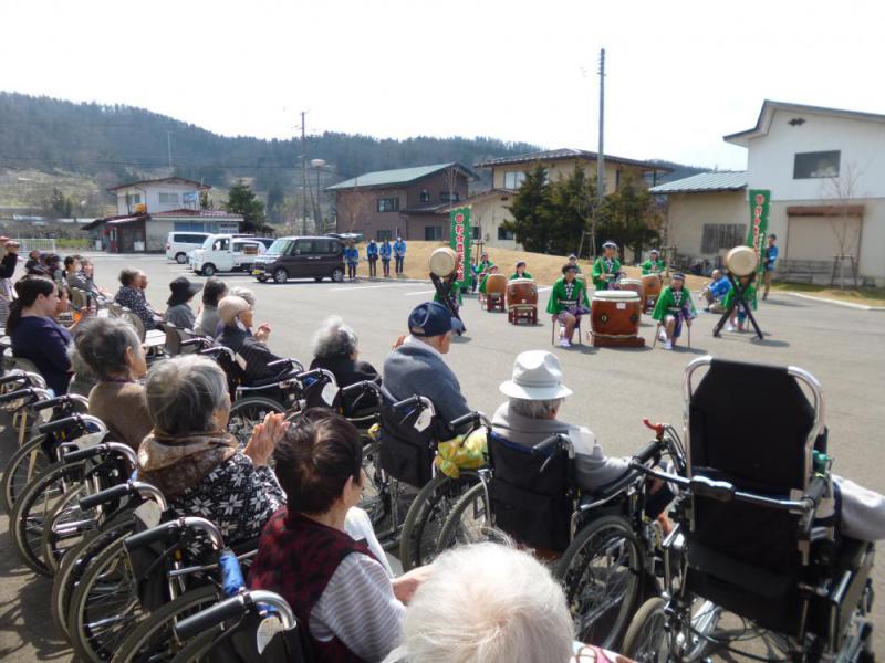 和合地区の子供たちによる和合太鼓の披露と御神楽が「和合荘」にやってきました!毎年恒例の地区のお祭りですが、今年は晴天に恵まれ、入居者の皆さん総出で外で見学です。威勢の良い太鼓の響きと迫力のある獅子舞に、皆さん楽しまれておりました。