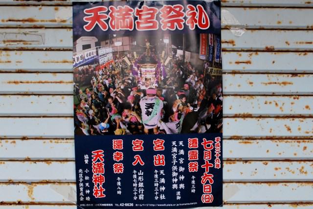 今日は実家のある川西町小松のフレンドリープラザ北側の天満神社の祭礼、神輿を見に行く、とおく東京都台東区浅草の三社祭や宮城県、岩手県など県内外の祭りにも参加している神輿会、この神輿は明治時代に作られたと伝わってる。いったん祭りは途絶えていたが、93年の町のフレンドリープラザ建設を契機に、地域を盛り上げようと有志が結集しみこしの修復に着手し94年の夏祭りから活動しているようです、ポスター写真は中学の同級生がとったものでした・・みこし東京では担いでいたのだが・・