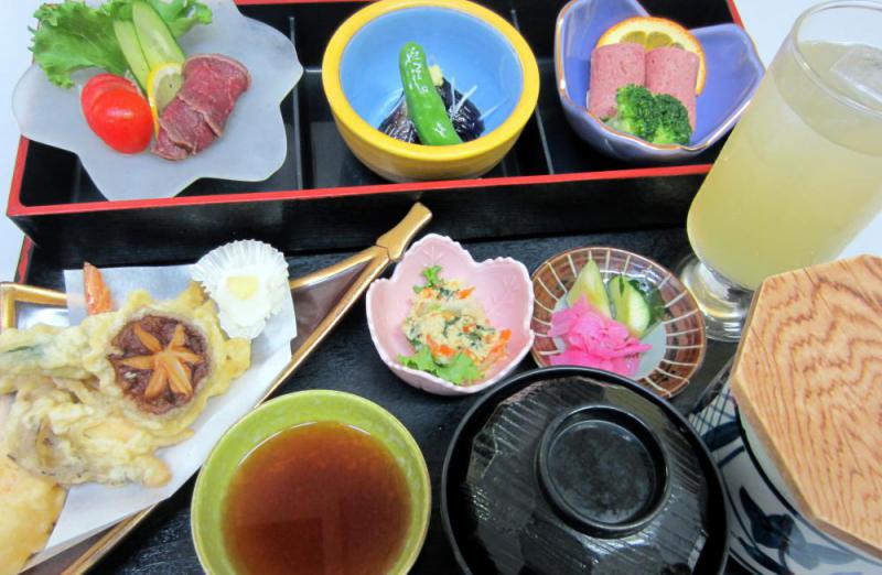 自家採り夏野菜と、朝日町の特産品を盛り込んだれすとらん「ひめさゆり」の8月限定・夏メニュー「りんご御膳」新発売!価格は。税込み1,000円1日10食限りとなります。
