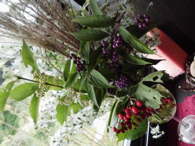 本日は、お昼のみ(14:00まで)の営業となります。すみませんがよろしくお願いします。今週の窓辺の花は「紫式部・白式部・すすき・孔雀アスター・がまずみ」です。