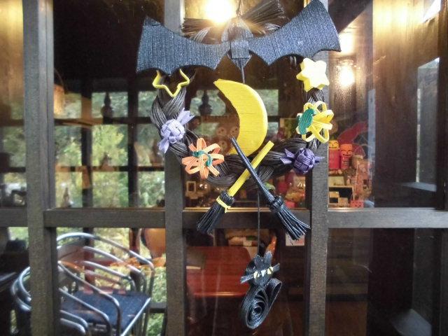 ハロウィン用に作ったリースあまり目立たないので玄関入り口のドアへ飾ってみました(^。^)vいかがでしょうか???