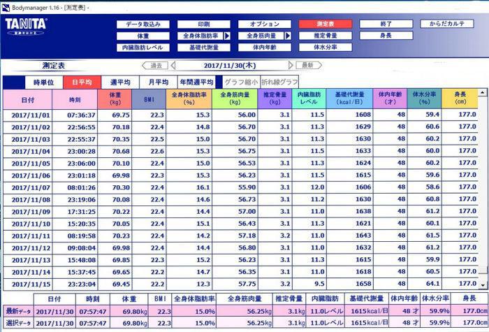 安定しています。が、しかし ドライブなどで外食の機会があると、平気で1〜2sアップするので、理想的には68sをきるぐらいかな? と、目標に到達すると、もっとという気持ちがわいてきます。 でもしばらくはこのままで。