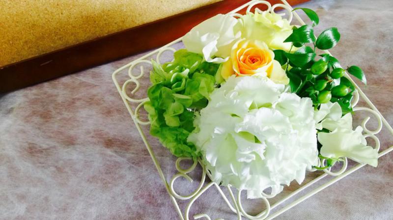 ワイヤーのフレームにお花を入れてみました♪ステキにできました☆