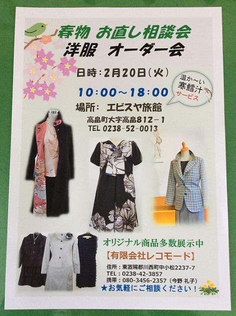 2月20日(火)高畠町エビスヤ旅館にて春ものオーダー会・お直し相談会