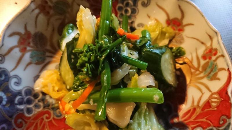 今日の【和食膳】のお漬物は【茎たちと春キャベツの三五八漬け】です。春はなかなか 漬物がなくて・・・・・そこで 簡単三五八(米麹・塩を合わせたもの)で一夜漬けができます(^。^)vシャキシャキのキャベツとほろ苦い茎たちが美味しいです。ぜひ、お試しあれ〜?