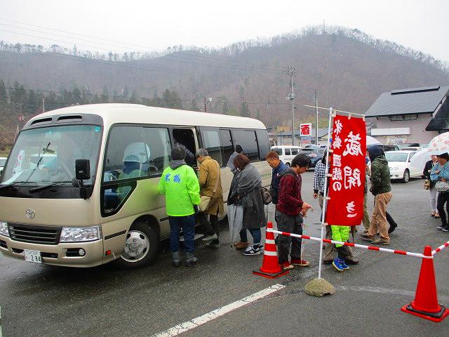 道の駅たかはたの駐車場から、シャトルバス1台、ワゴン車3台で