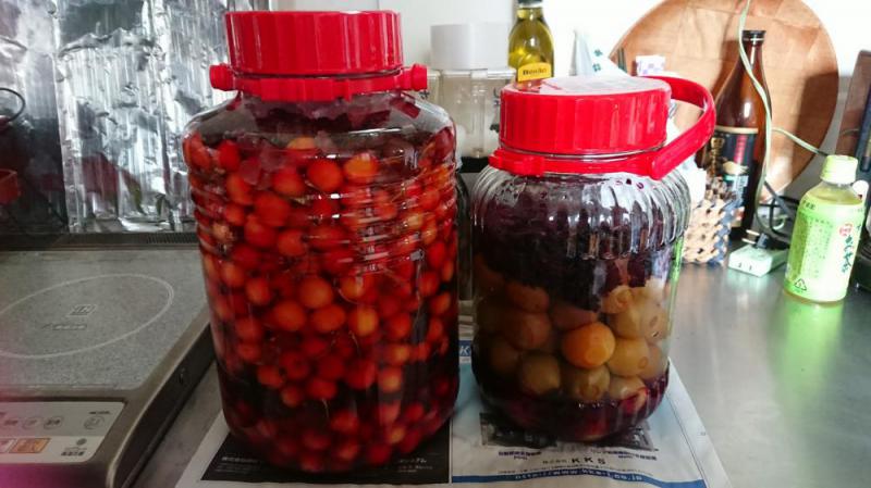 またもや、大量の【さくらんぼ】紅秀峰が届きました(^。^)v早速 一晩 塩水につけて今日 赤しそと氷砂糖・酢で漬け込みました。これで 1年間 いつでも【さくらんぼ】がたべれます♪