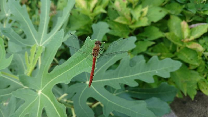 お盆が過ぎるとだんだんと・・・・・・秋の気配が?でも、暑いですが!!今日の朝 美蔵の庭のイチジクの木に【とんぼ】が止まっておりました。少しづつ 秋に入っている感じがしました。