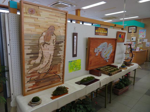 精巧なミニチュア古民家や、大型の木彫り額、高見やぐらなど、