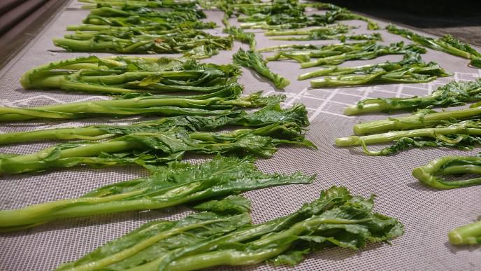 今日は 20℃以上と暖かくなるとかで・・・・・こんな日は・・・・・・冬の保存食 作りがはじまります。まず、今年初の干し物は今が旬の「くきたち」!!天日でカラカラになるまで干します。今日は 干し物作りに最適な日です(^。^)v