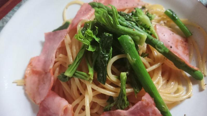 今日は 採れたての山菜で・・・・・【おまかせパスタ】は「こしあぶら」入りのベーコンと山菜のパスタです(^。^)vほどよい山菜のきどさが春の味となります(^^♪*(毎日 同じ材料ではございませんのでご了承くださいませ)*