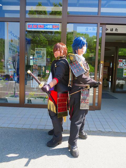 道の駅たかはたの前でもパチリ!  「刀剣乱舞」のコスプレです。