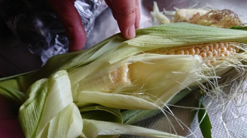 はじめて「トウモロコシ」を育ててみました(^。^)v以外にも実になりました。カラスが狙っているので[網]でぐるぐる巻きしております。おかげさまで収穫 できました(^^♪