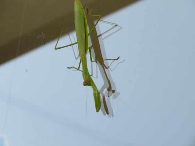 道の駅たかはたの窓ガラスにカマキリを発見!