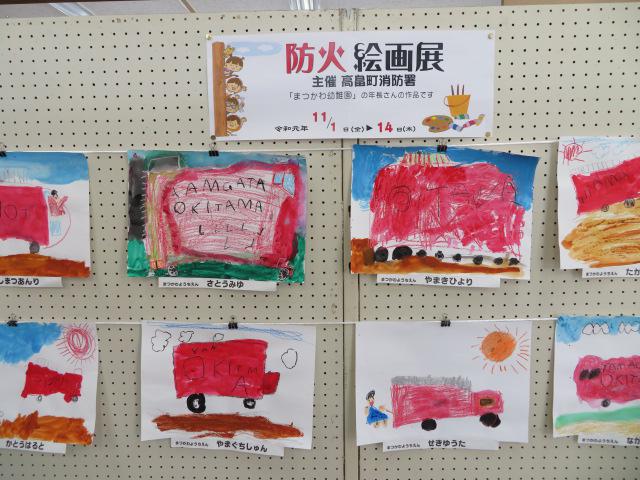 「まつかわ幼稚園」の年長さんが描いた作品を展示する、