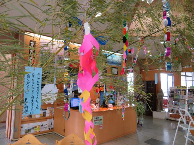 館内に七夕飾り用の青竹2本と短冊を準備しました。