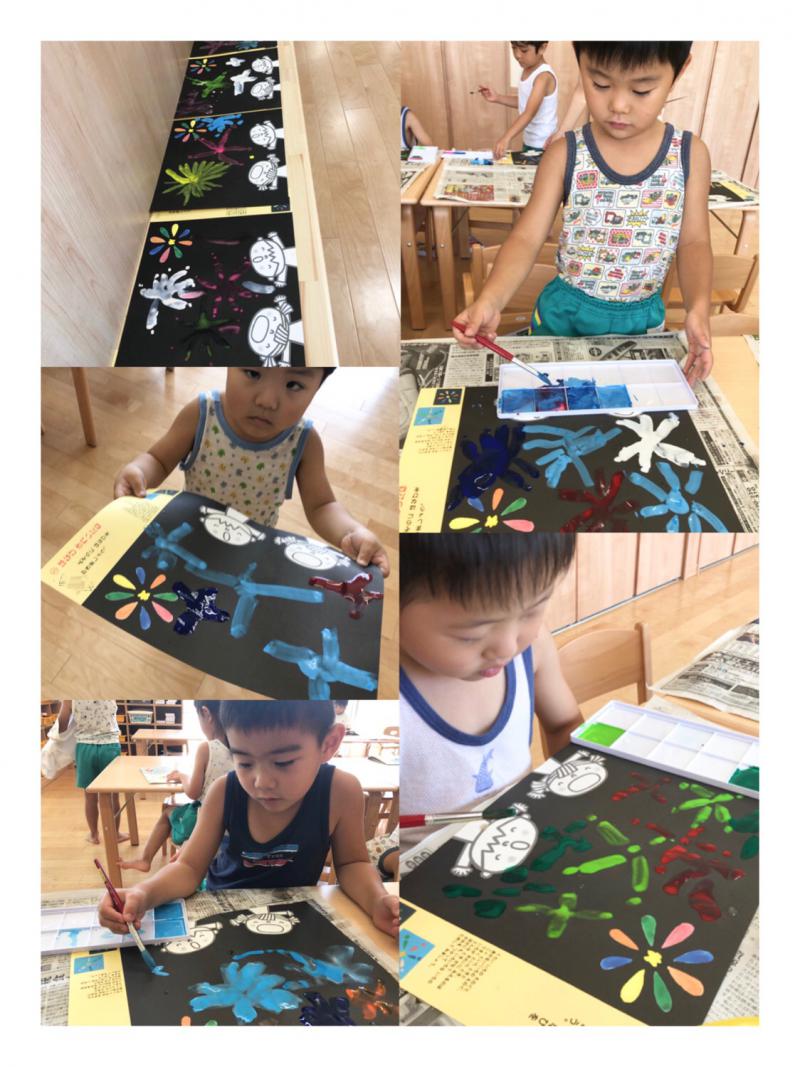 絵の具の使い方にも慣れてきたうさぎ組さん。