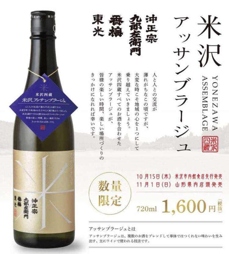 米沢市内の蔵元がそれぞれの純米吟醸酒をブレンドして互いの良さを引き出した